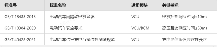 实时性:VCU主控任务周期精度 ≤ ±0.5ms,关键事件响应时间 ≤ 10ms;